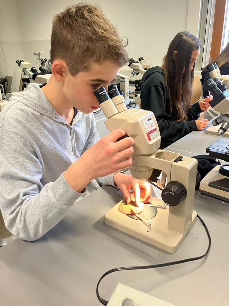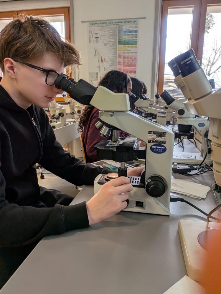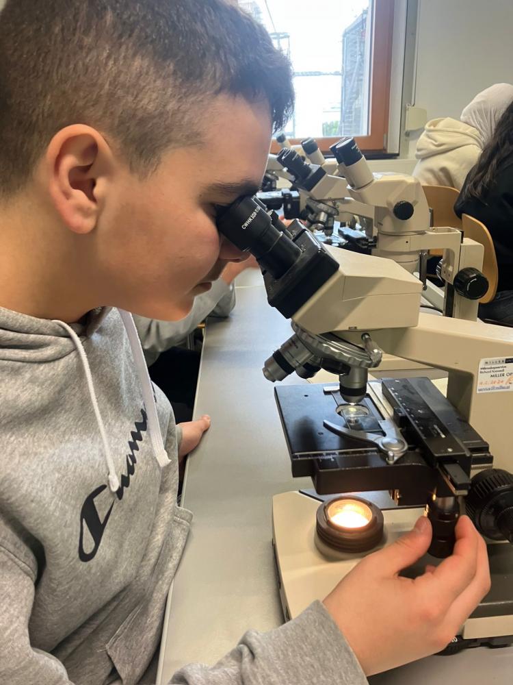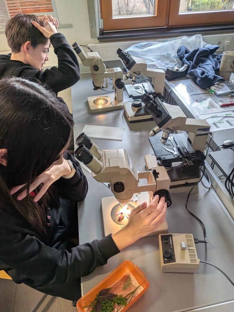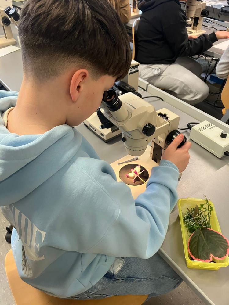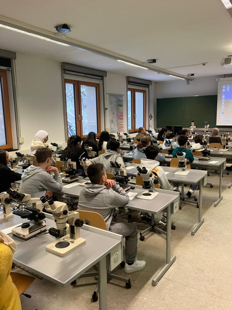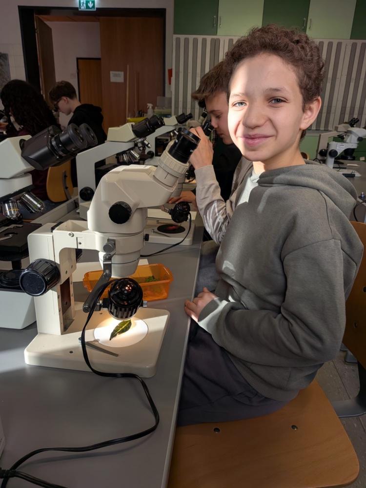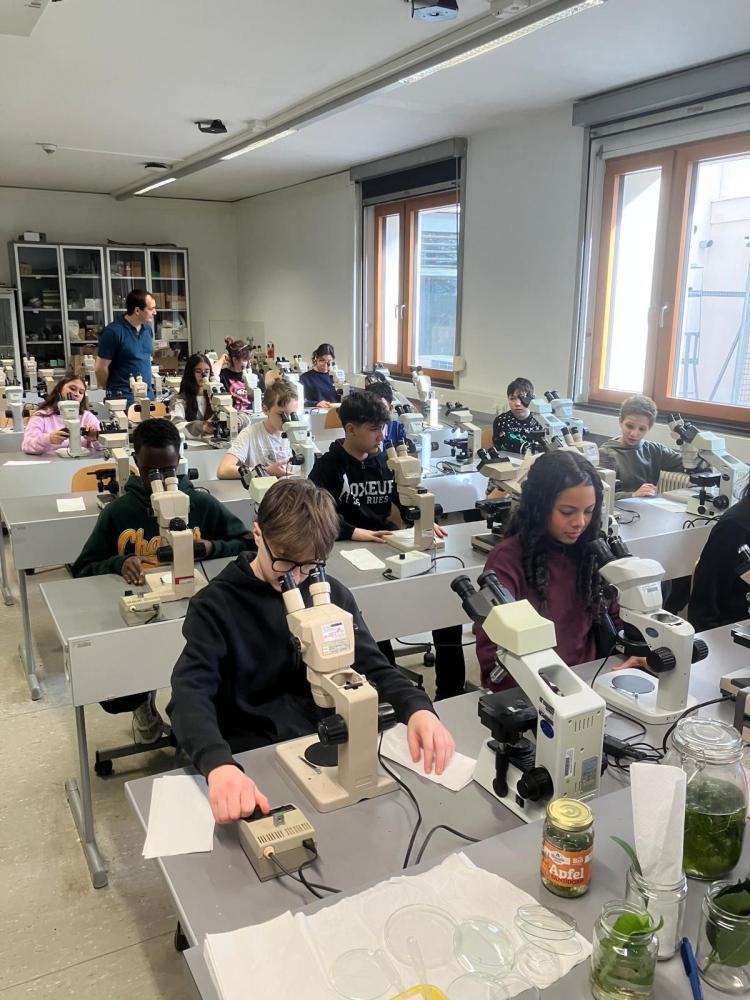 Die 2. Klassen besuchten im Rahmen des Biologieunterrichts den Botanischen Garten und nahmen dort an einem spannenden Mikroskopier-Workshop teil. Nach einer kurzen Einführung durfte jede Schülerin und jeder Schüler an einem eigenen Mikroskop arbeiten. Dabei kamen sowohl Auflichtmikroskope als auch Durchlichtmikroskope zum Einsatz, sodass unterschiedliche Präparate optimal untersucht werden konnten.